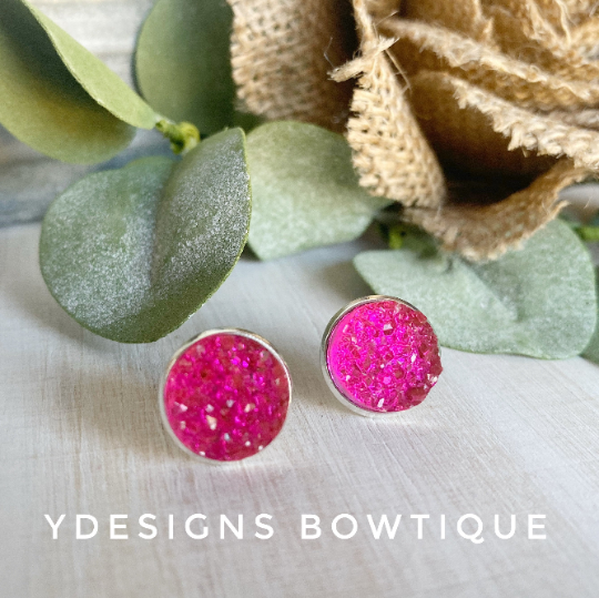 Hot Pink Faux Druzy Earrings